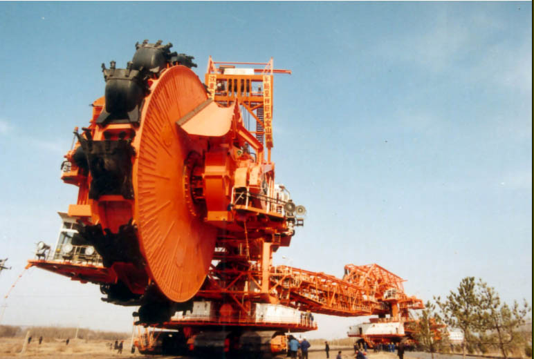 The bucket wheel excavator is a kind of mining machine which can work continuously. And it presents the features of small linear size, light weight, large excavation capacity, high production rate, excellent adaptability and outstanding energy conservation and environmental protection performance. The machine is of widespread applications in not only the overburden stripping and mining operations, but also the works for roads, dams, canals, artificial lakes, foundation construction of large projects, reclaiming farmland from waters and large open-pit stockyards. Our company can provide various standard type- and extended-length type bucket wheel excavators driven either by diesel engines or electric drives. The machines can also be tailor-engineered to suit the client’s the requirements.